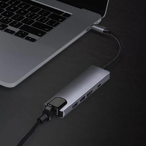 Adaptador Hub USB Tipo-C 5 en 1 con RJ45, USB 3.0 x2, PD y HDMI