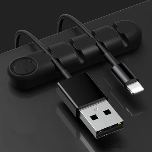 Organizador de Cables 5 PCs Oso Silicone 4 Agujeros Fijación Desktop (Negro)