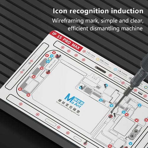 La Almohadilla Magnética Suave y Flex con Posicionamiento de Tornillo de Doble Cara está diseñada específicamente para el modelo iPhone 13 Pro. Este Accesorio profesional facilita el mantenimiento y la Reparación del dispositivo, permitiendo el posicionamiento preciso de tornillos mediante una superficie magnética Flexible y suave que no pierde fuerza magnética al doblarse. Su función Principal es organizar y asegurar tornillos durante el desmontaje y montaje, evitando pérdidas y errores en la ubicación de Piezas. Cuenta con inducción de reconocimiento de iconos para identificar fácilmente la posición de cada tornillo, y su diseño de doble cara permite el uso eficiente de ambos lados, optimizando el espacio y la funcionalidad durante el proceso de Reparación.