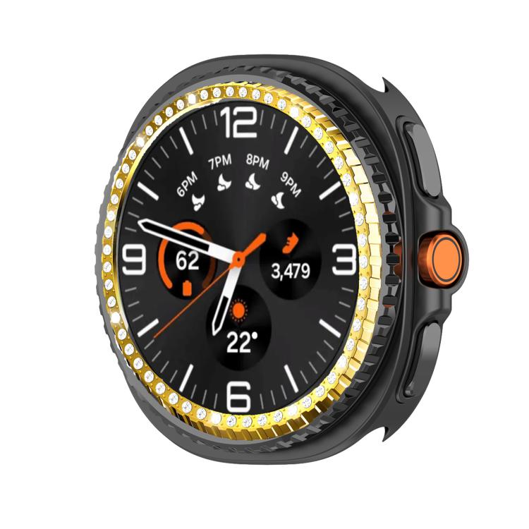 Anillo protector de metal con diamantes de una sola fila para Samsung Galaxy Watch8 Classic de 46 mm (oro galvanizado)