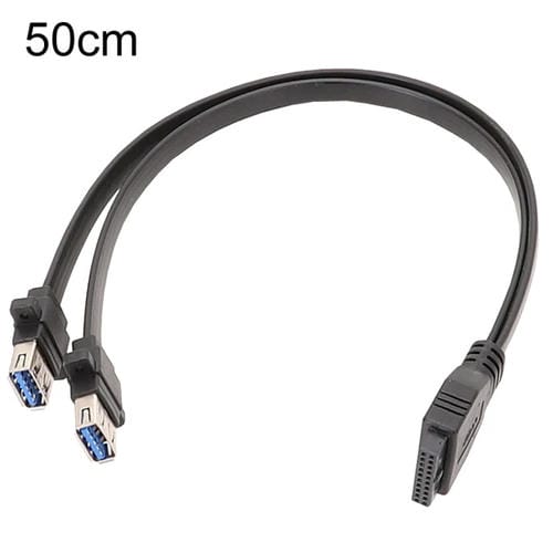 • Longitud: 50 cm; doble Puerto USB 3.0 hembra; distancia entre tornillos de fijación: 20 mm; exposición del Conector USB: 9,5 mm; Cable blindado para transmisión estable de datos
