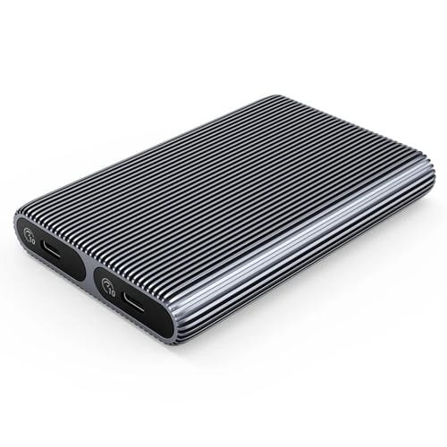 - Dimensiones de 112,5x75x17 mm, interfaz USB 3.2 Gen2 Tipo-C, velocidad de transmisión de 10 Gbps en bahías duales, capacidad máxima de 4TB, instalación sin Herramientas, incluye Cable Tipo-C a Tipo-C/USB-A de 30 cm