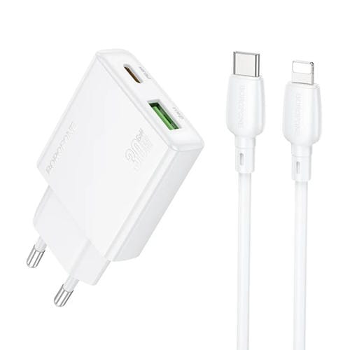 Cargador USB Tipo C Hoco BN25 PD 30W con Juego de Cables Tipo C a 8 Pines 1 m (Blanco) (UE)