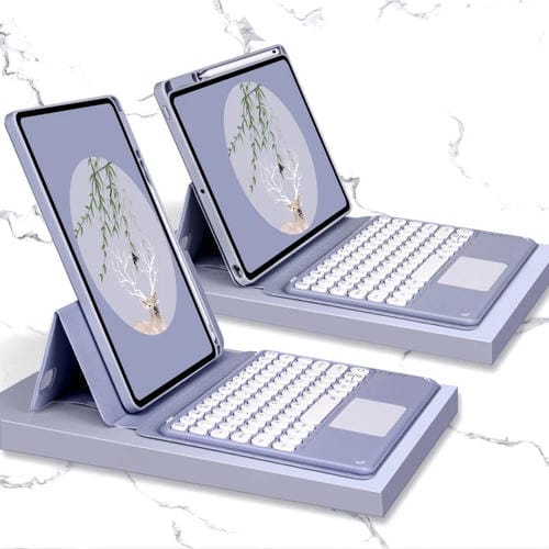 Case de Cuero Teclado Bluetooth con Panel Táctil Estuche Fondo Rotativo para iPad 10.2 (2021, 2020, 2019) Air 2019 Pro 10.5 (Gris Lavanda)
