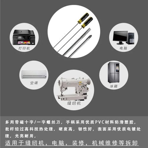 El destornillador extendido cruz magnético de 12 pulgadas es una herramienta diseñada específicamente para la reparación de máquinas de coser. Su modelo genérico es compatible con una amplia variedad de máquinas, facilitando el ajuste y mantenimiento de componentes internos. Cuenta con una hoja de 5 mm fabricada en acero al cromo vanadio (CRV), que proporciona alta dureza y resistencia al desgaste. El mango está elaborado en PVC de alta calidad, ofreciendo un agarre antideslizante y resistencia al aceite, lo que mejora la precisión y seguridad durante su uso. Además, el tratamiento de galvanoplastia en la superficie del destornillador garantiza durabilidad y resistencia a la corrosión, manteniendo la funcionalidad incluso en ambientes con sudor o humedad.