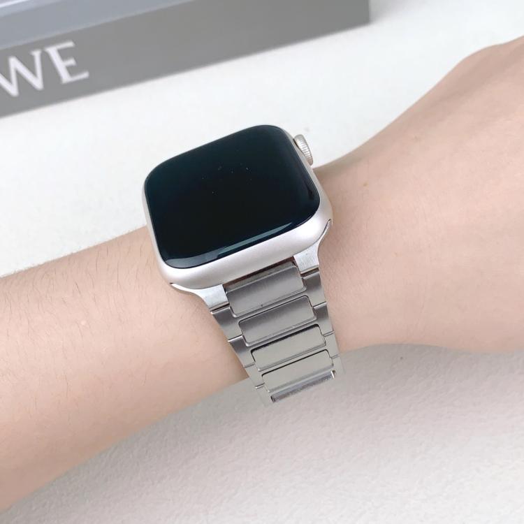 Correa de acero inoxidable con hebilla lateral desmontable y tres cuentas para Apple Watch de 42 mm, 41 mm, 40 mm y 38 mm (plateada)