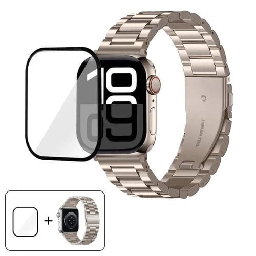 Correa de acero inoxidable con tres cuentas y película curva 3D para Apple Watch Series 42 mm (Starlight)