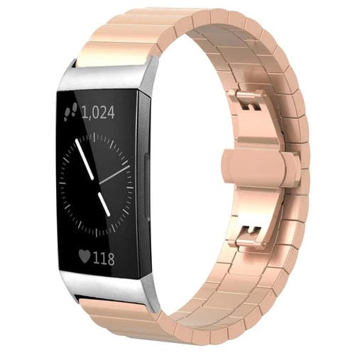 Correa de acero inoxidable macizo de bambú de una sola cuenta para Fitbit Charge 4/3 de 18 mm xDfind (oro rosa)