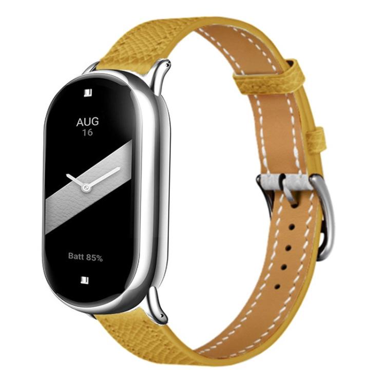 Correa de cuero con hebilla plateada fina para Xiaomi Smart Band 10/9/8 (textura de lichi marrón)