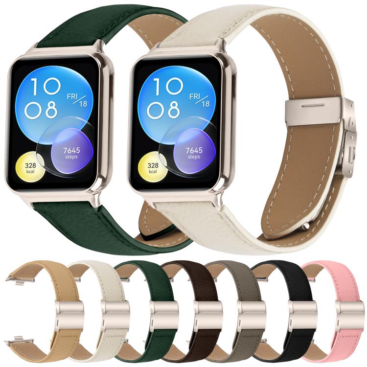 Correa de cuero con hebilla trasera de tortuga y textura de lichi para Xiaomi Smart Band 9 Pro y Redmi Watch 5 (verde)
