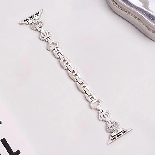 Correa de metal con diamantes y cadena de corona para Apple Watch de 42, 44, 45, 46 y 49 mm (luz de estrella)