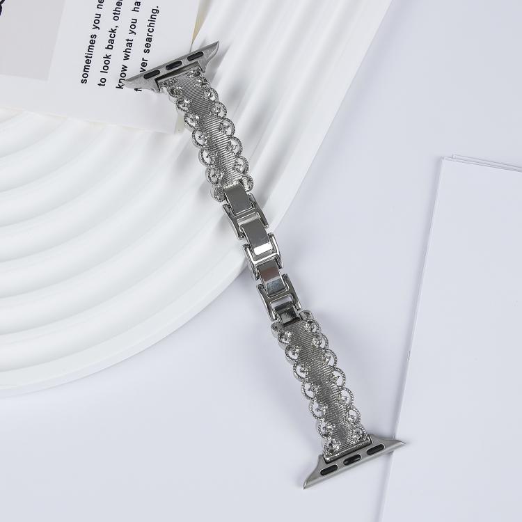 Correa de metal de aleación de diamante con borde de encaje para Apple Watch de 42 mm, 41 mm, 40 mm y 38 mm (plateada)