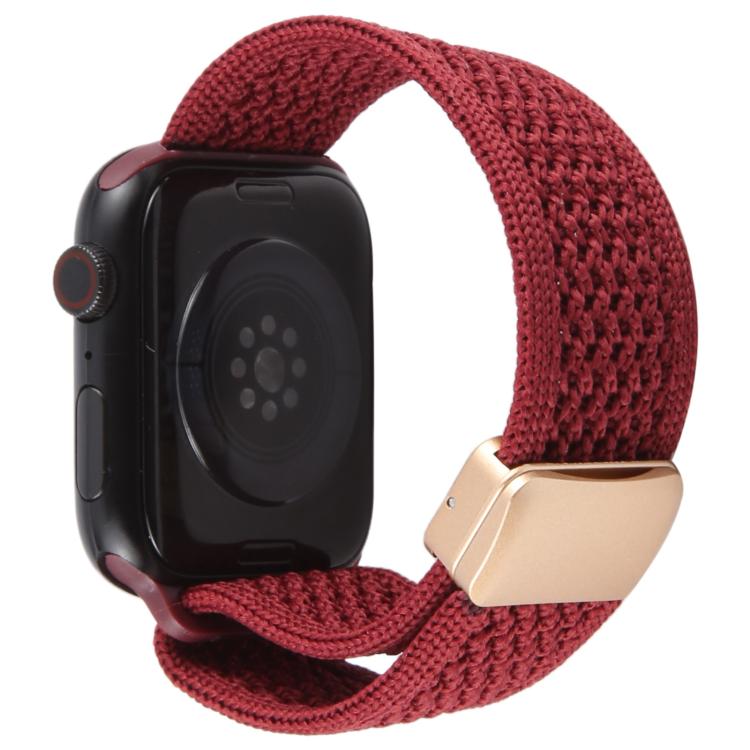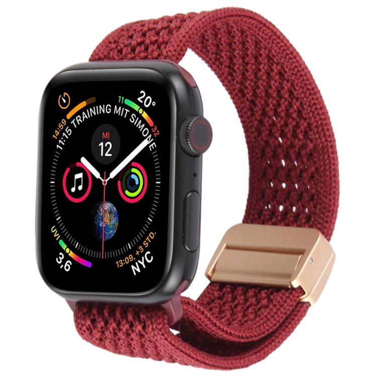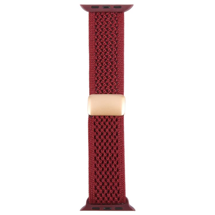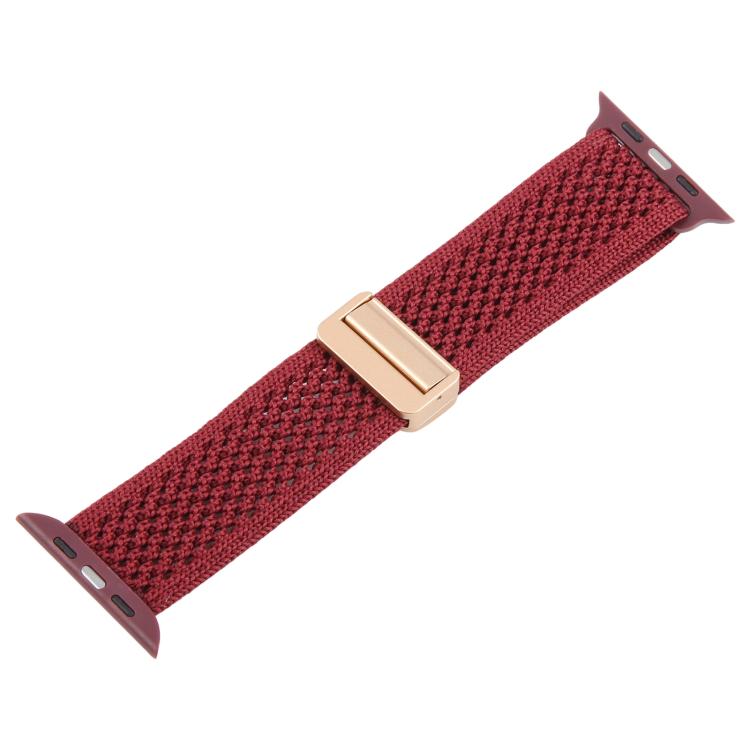 Correa de nailon transpirable con hebilla magnética para Apple Watch de 46 mm, 49 mm, 45 mm y 44 mm (rojo vino)