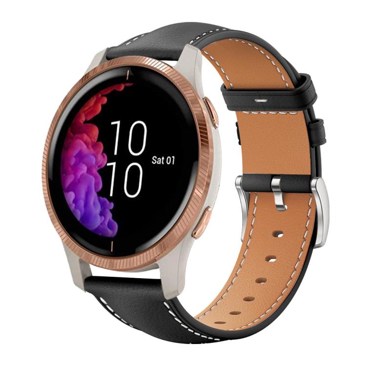 Correa de reloj de 20 mm para Garmin Venu 2 / Venu / SQ2 / SQ xDfind de piel de tiburón negra de grano fino (negra)
