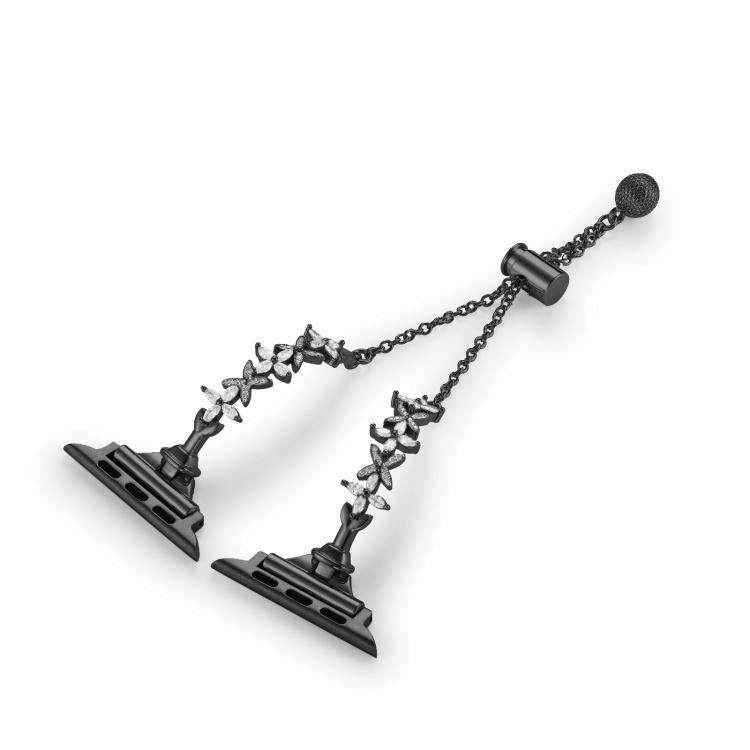 Correa de reloj de aleación de zinc con diamantes y trébol de cuatro hojas para Apple Watch de 46 mm, 49 mm, 45 mm y 44 mm (negra)