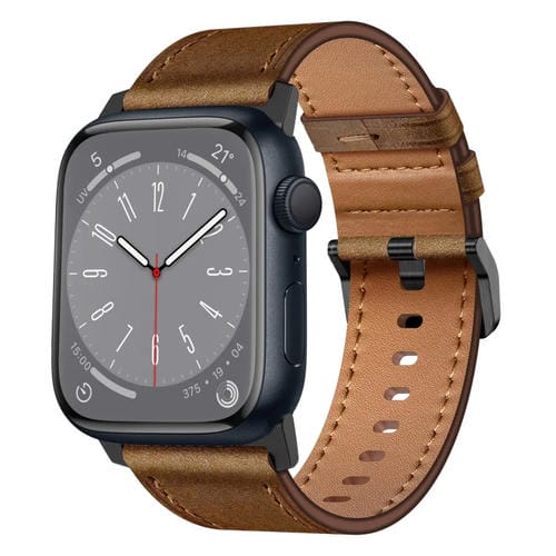 Correa de Reloj Cuero Grano Superior Wilderness para Apple Watch Se 2023 44mm (Conector Negro Marrón Oscuro)