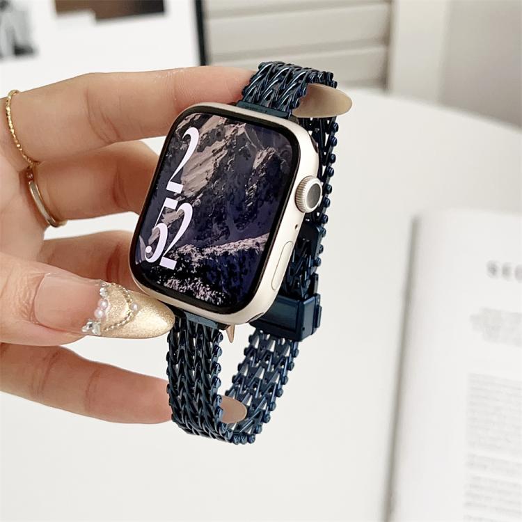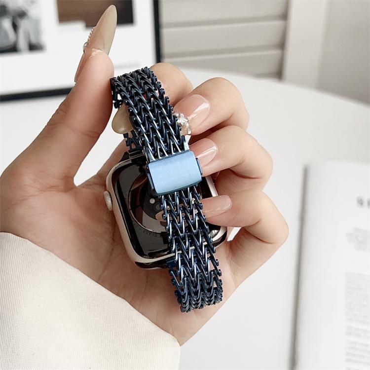 Correa de reloj de malla metálica de acero delgada con cierre magnético para Apple Watch de 42 mm / 41 mm / 40 mm / 38 mm (azul)