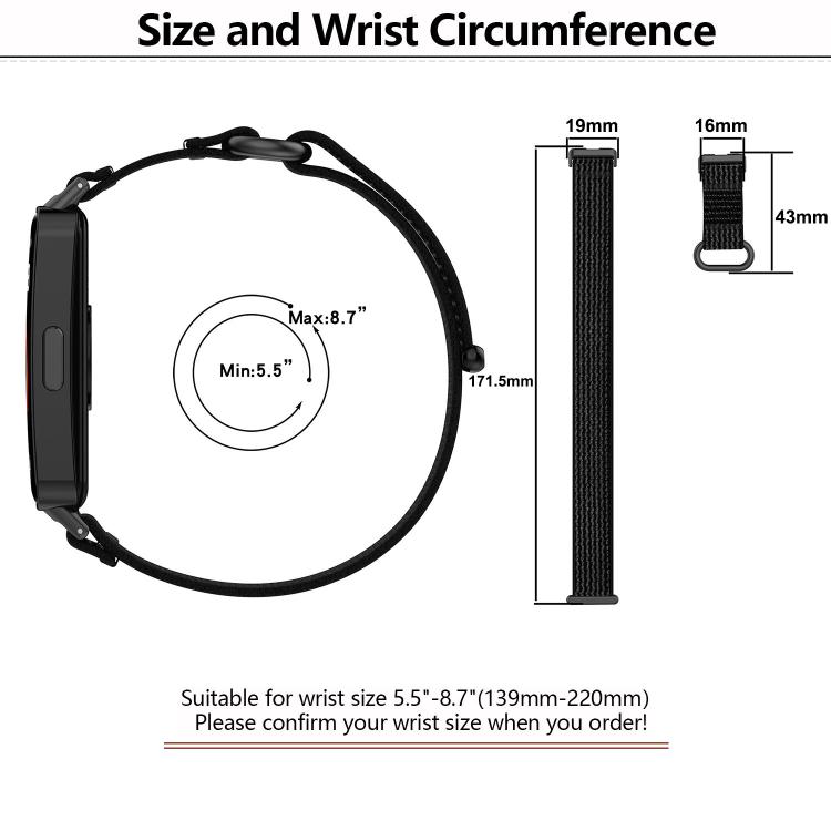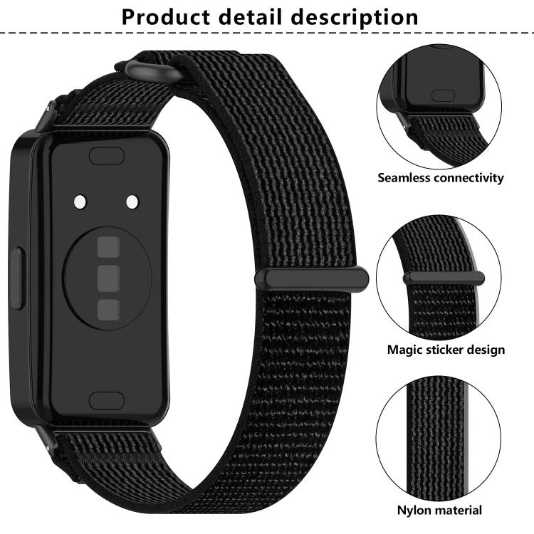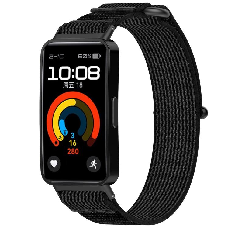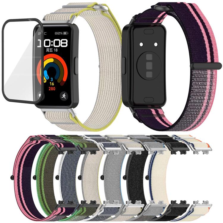 Correa de reloj de nailon con cierre de velcro y película curva 3D para Huawei Band 9/9 NFC Wild Path (negro y gris)