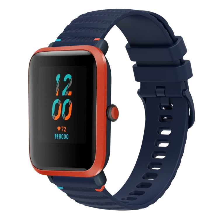 Correa de Silicona con Puntadas Onduladas y Puntos para Reloj Amazfit Bip S 20mm (Azul Marino)