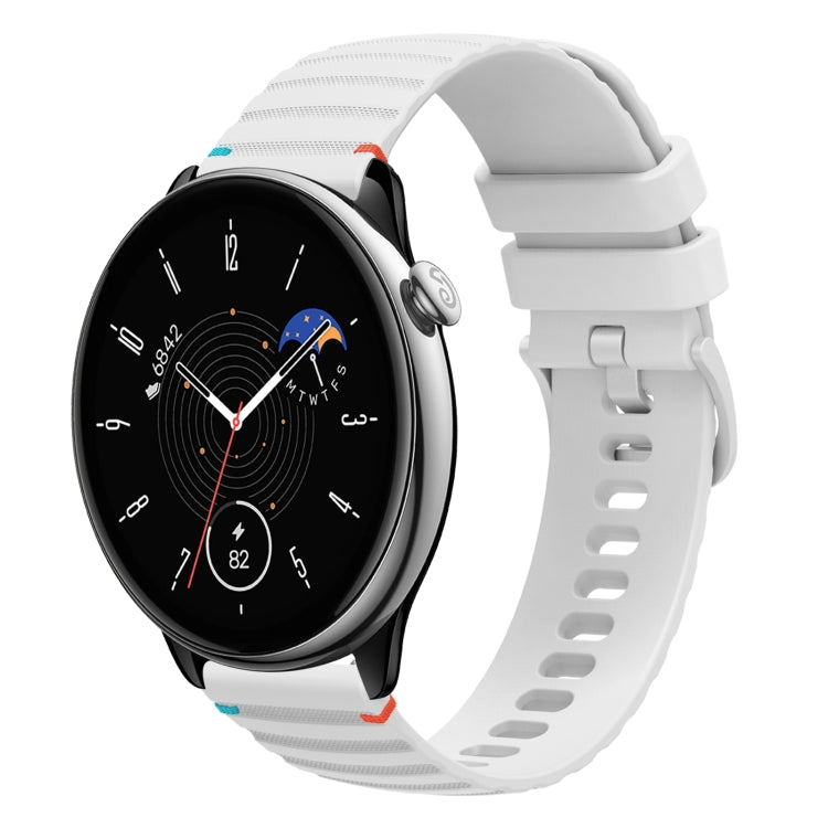 Correa de Silicona para Reloj Amazfit GTR Mini 20mm con Puntadas Onduladas y Puntos (Blanca)