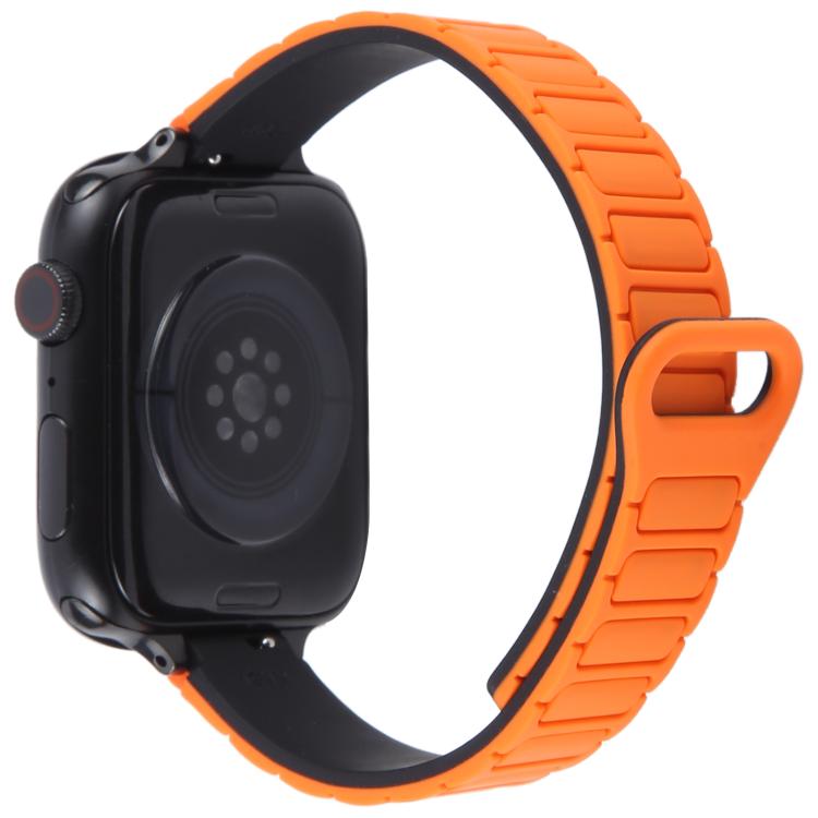 Correa de silicona magnética delgada en forma de I para Apple Watch de 46 mm, 49 mm, 45 mm y 44 mm (negro y naranja)