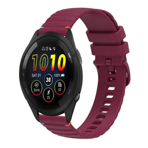 Correa de Silicona Garmin Forerunner 265 Music 22mm con Puntadas Onduladas (Rojo Vino)