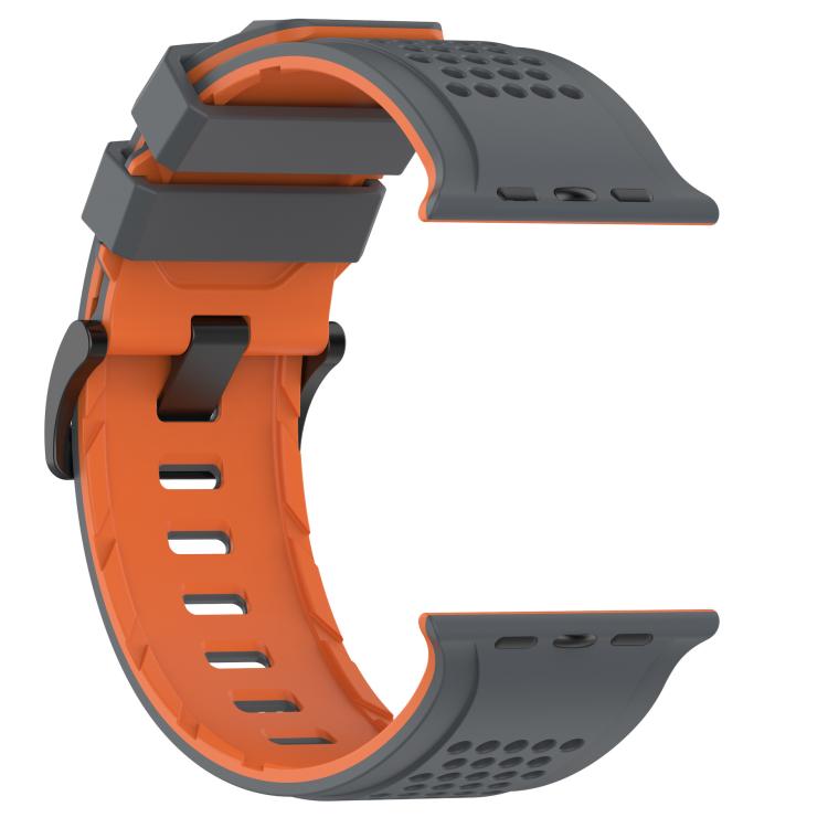Correa de silicona transpirable con diseño de cuadros para Apple Watch de 46 mm, 49 mm, 45 mm y 44 mm (gris espacial y naranja)