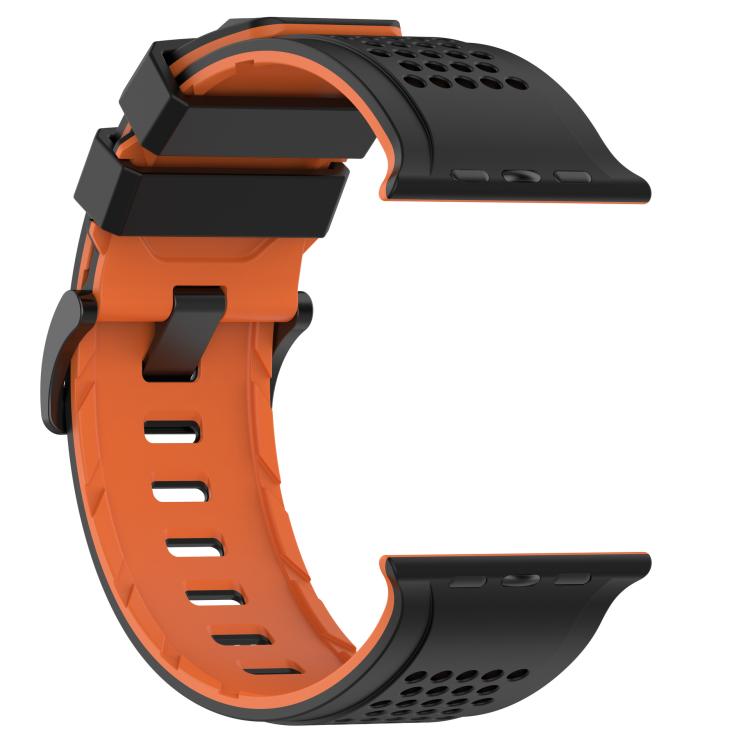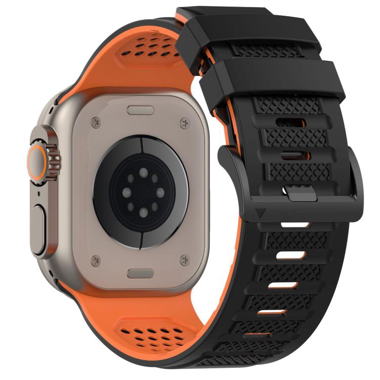 Correa de silicona transpirable con diseño de cuadros para Apple Watch de 46 mm, 49 mm, 45 mm y 44 mm (negro y naranja)