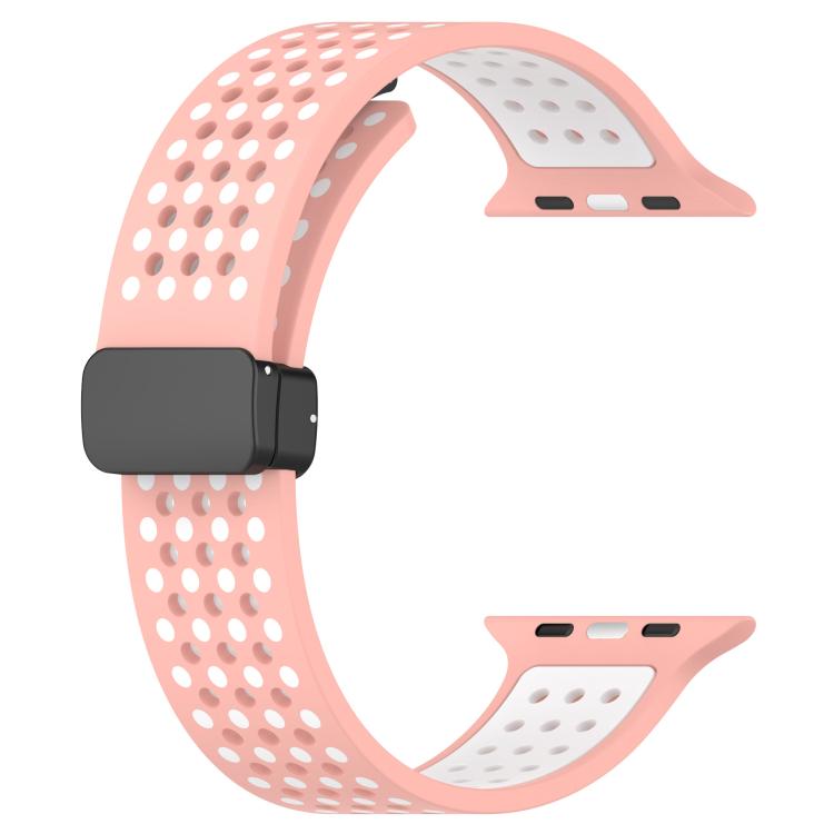 Correa de silicona transpirable con hebilla magnética para Apple Watch de 42 mm, 41 mm, 40 mm y 38 mm (rosa y blanco)