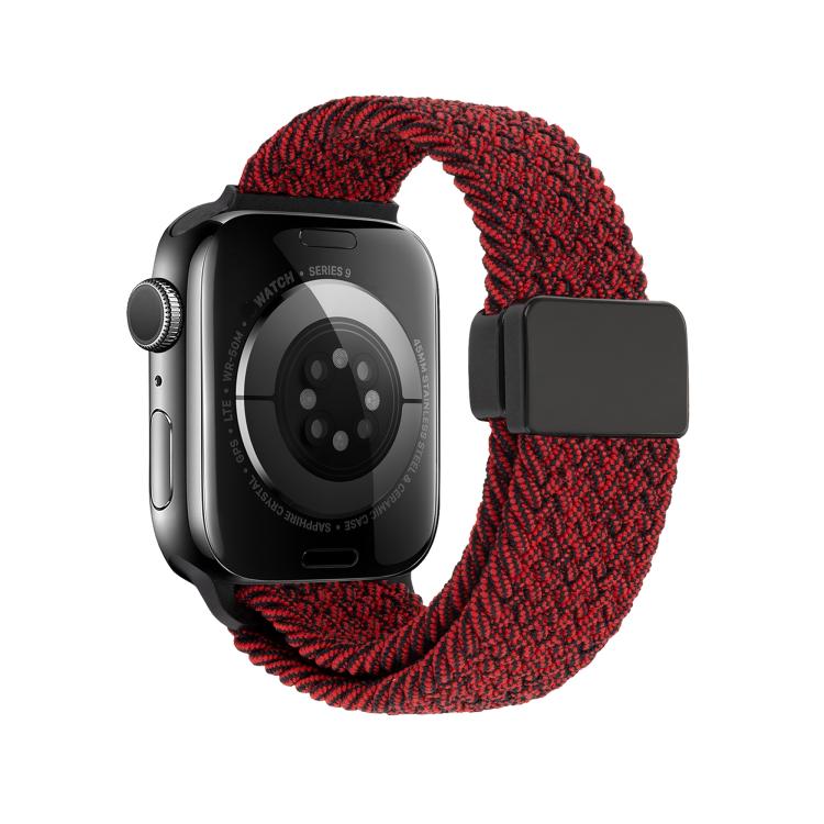 Correa tejida con hebilla magnética para Apple Watch de 46 mm, 49 mm, 45 mm y 44 mm (negro, rojo limo)