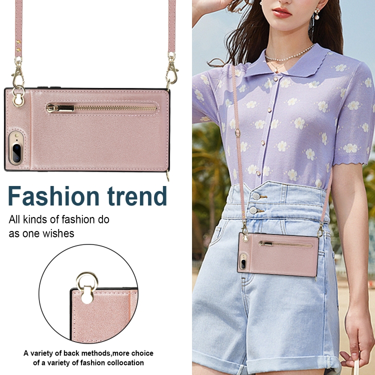 Funda Trasera TPU + PU con Cremallera Cruzada, Soporte, Ranuras y Correa para iPhone 8 Plus / 7 Plus (Oro Rosa)