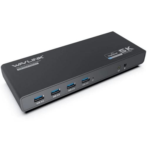 - Soporta resoluciones de hasta 5K (5120 x 2880 a 60 Hz) en dos monitores DisplayPort; incluye 15 Puertos: 3 USB-C, 6 USB 3.0 tipo A, 2 DisplayPort++, 2 HDMI, 1 Gigabit Ethernet RJ-45, y Conector de audio; GPU USB 3.0 integrada; Carga rápida PD 65/100W; sonido envolvente 5.1 canales vía DisplayPort
