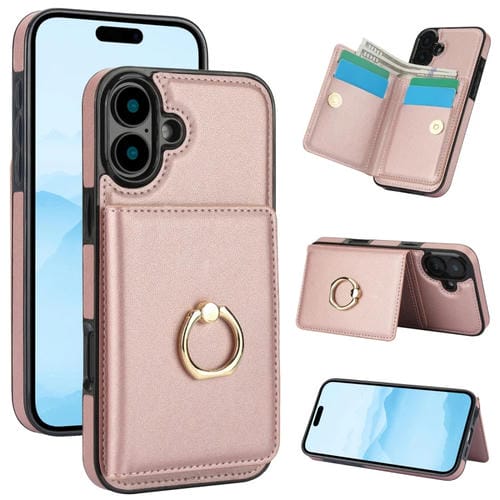 Estuche para Teléfono con Anillo para Tarjeta Antirrobo Rfid iPhone 16 Plus (Oro Rosa)