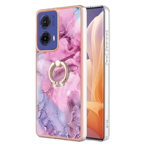 Estuche para Teléfono Motorola Moto G85 con IMD Doble Cara y Galvanoplastia Mármol (Rosa)
