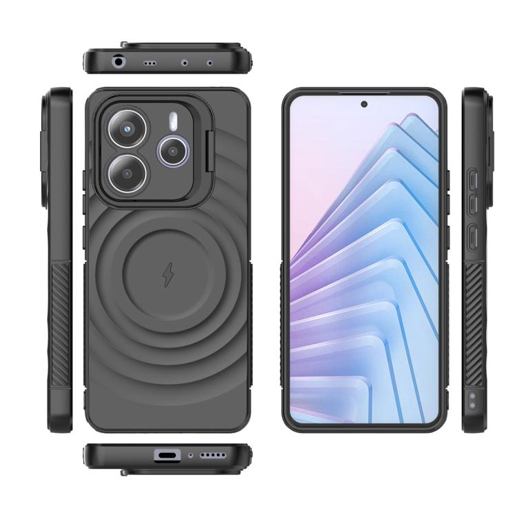 Estuche para Teléfono con Marco de Lente Corrugado Magsafe para Redmi Note 14 5G (Negro)