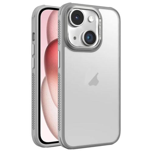 Estuche para Teléfono iPhone 15 Marco Lente Metal Esmerilado Sensación Piel Enfriamiento (Gris)