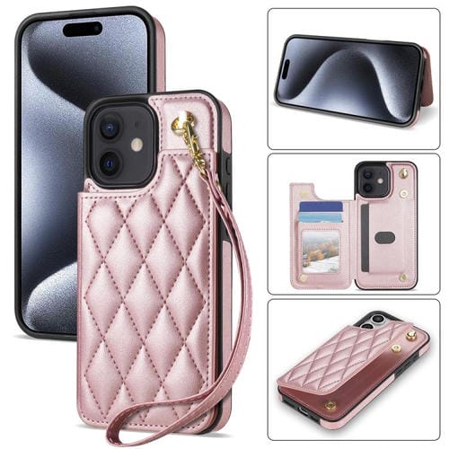 Estuche para Teléfono iPhone 11 con Ranuras para Tarjetas Hebilla Doble y Cordón (Oro Rosa)