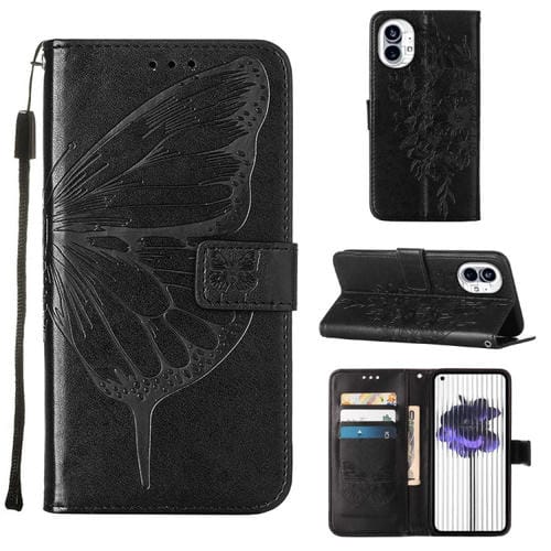 Estuche para Nothing Phone 1 de Cuero con Mariposa en Relieve (Negro)