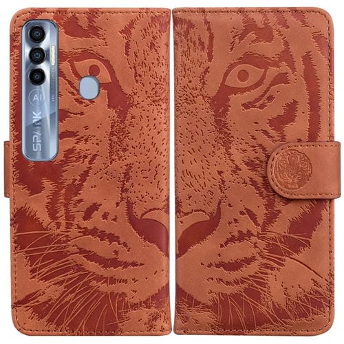 Funda de cuero horizontal con patrón Tiger para Tecno Spark 7 Pro (Brown)