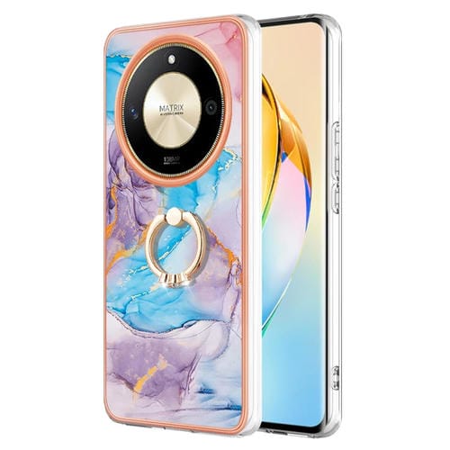 Funda TPU a Prueba de Golpes Honor X9B con Patrón Galvanoplastia y Soporte Anillo (Mármol Azul Vía Láctea)