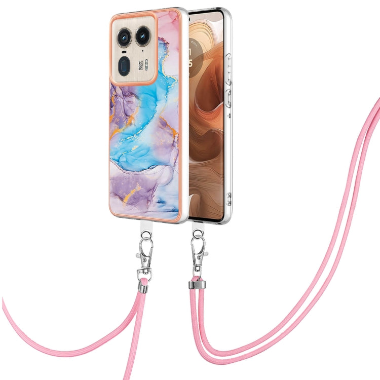 Funda TPU a Prueba de Golpes con Patrón Galvanoplastia IMD para Motorola Edge 50 Ultra con Cordón (Mármol Azul Vía Láctea)