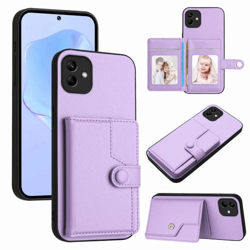 Funda Antirrobo Rfid para Samsung Galaxy A04 4G con Botón y Tarjetero (Morado)