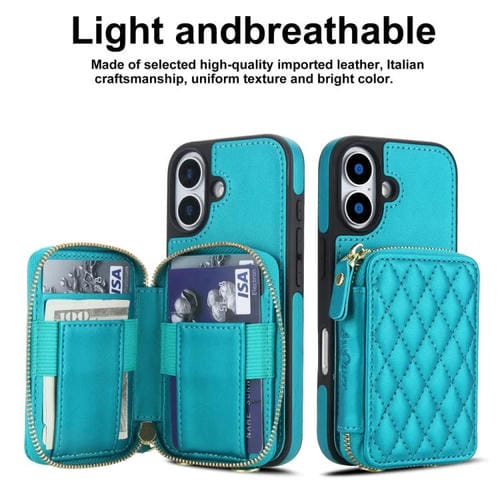 Funda AwQuer con cierre cruzado y parte trasera de cuero con diseño rómbico para iPhone 17 (verde)