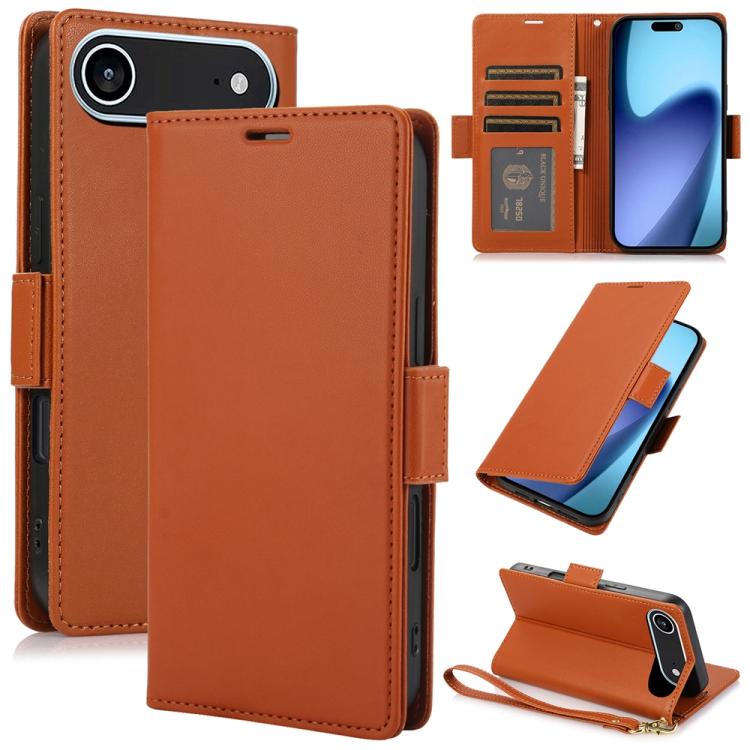 Funda de cuero antirrobo RFID con hebilla lateral para iPhone Air (marrón)