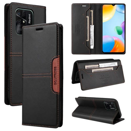 Funda de Cuero Antirrobo Rfid para Redmi 10C Gqutrobe G01 (Negra)