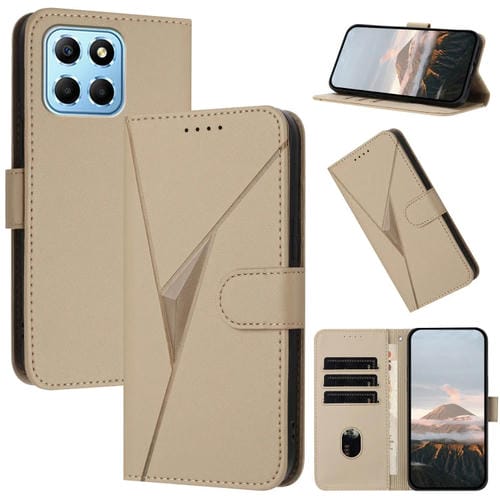 Funda de Cuero para Honor X8 5G con Cierre de Hebilla y Diseño Triangular (Dorada)