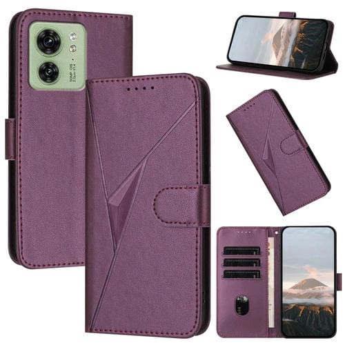 Funda de Cuero con Cierre de Hebilla y Diseño Triangular para Motorola Edge 40 (Morado Oscuro)