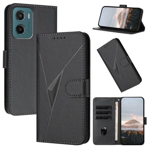 Funda de Cuero para Motorola Moto G05 con Cierre de Hebilla y Diseño Triangular (Negro)