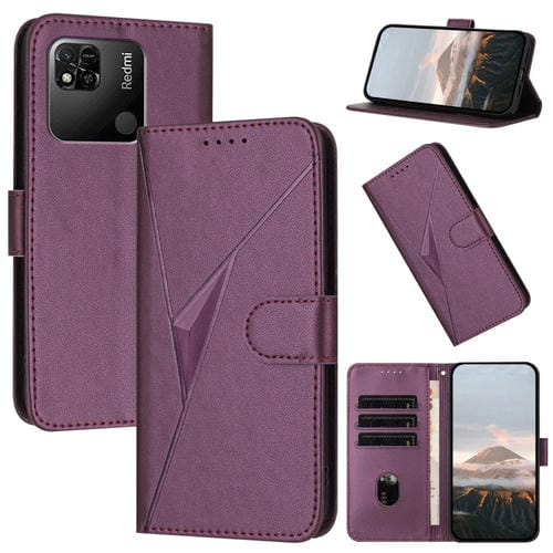 Funda de Cuero con Hebilla Triangular para Redmi 10A (Morado Oscuro)
