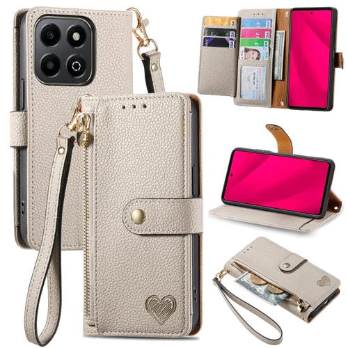Funda de Cuero Smart Love con Cordón y Cremallera para Honor 200 (Gris)